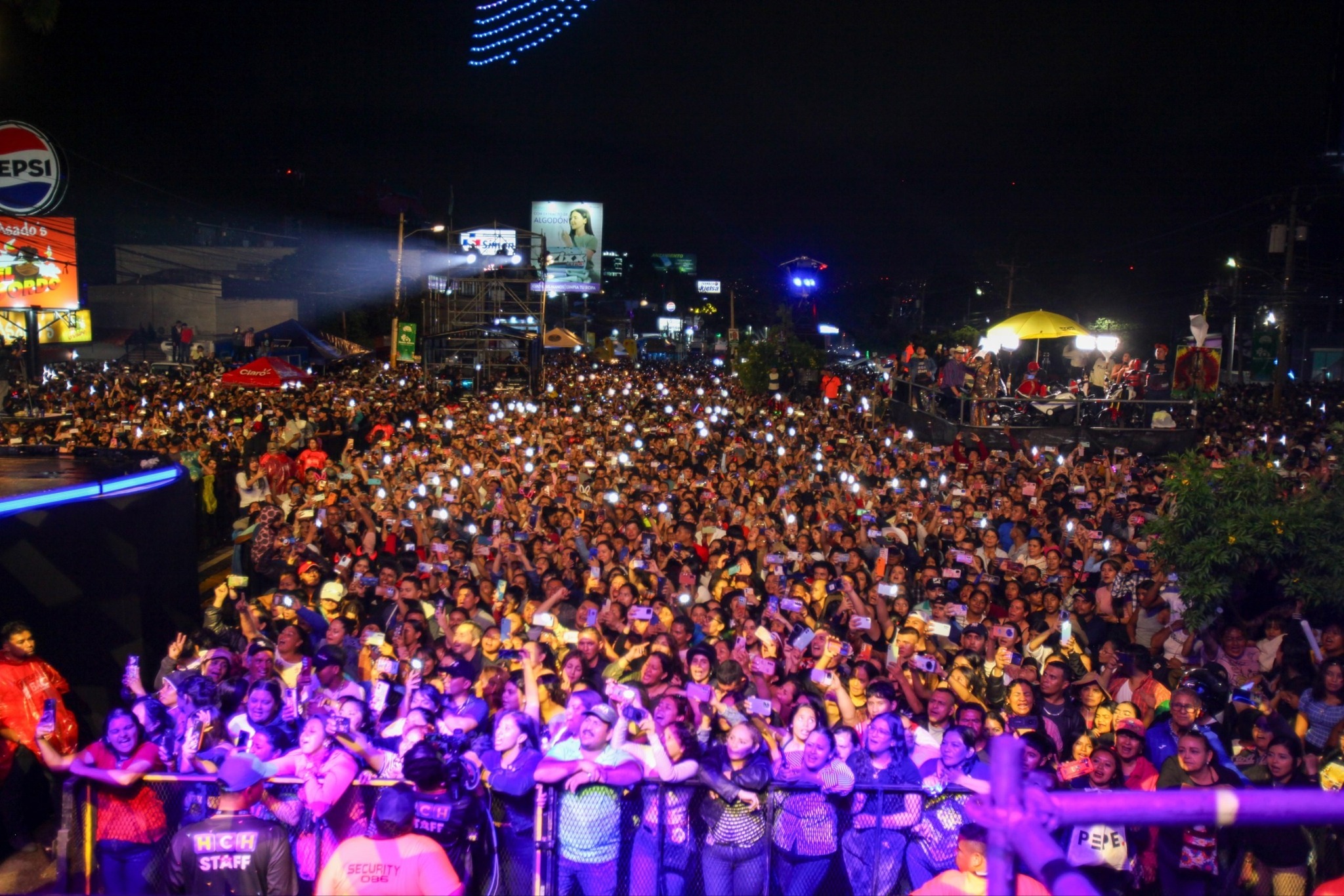 Al caer la noche, centenares de drones iluminaron el cielo capitalino con figuras y luces, innovando la experiencia del carnaval. En simultáneo, el show de luces en tierra y los conciertos marcaron un ambiente festivo para todo tipo de público.