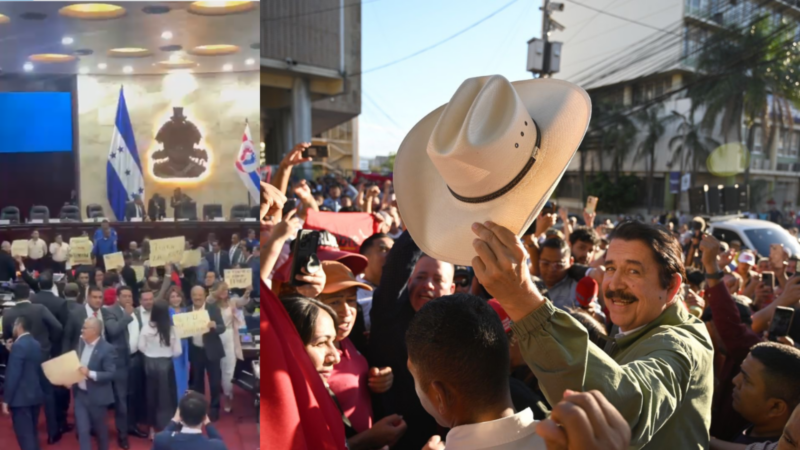En el lugar se hicieron presentes el expresidente Manuel Zelaya, conocido como “Mel”, y la funcionaria Rixi Moncada, quienes dirigieron mensajes a los colectivos que se apostaron desde tempranas horas en las inmediaciones del Poder Legislativo.