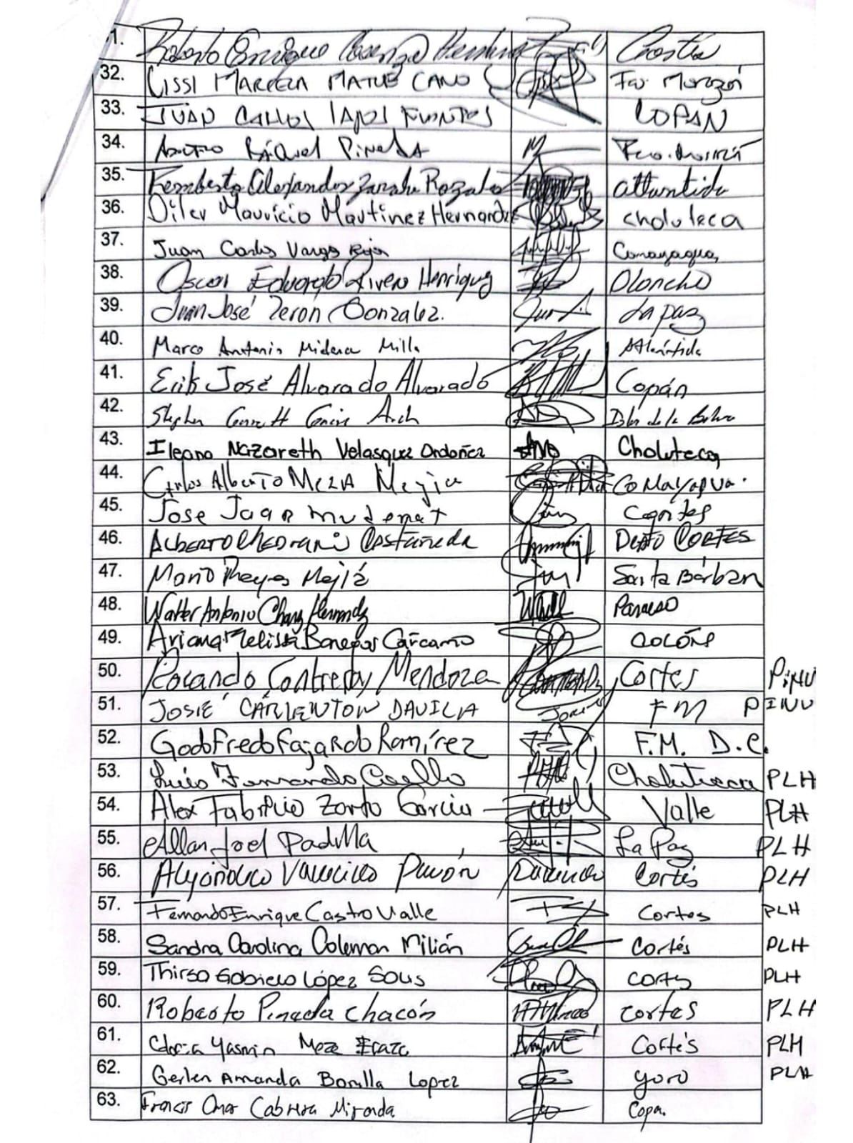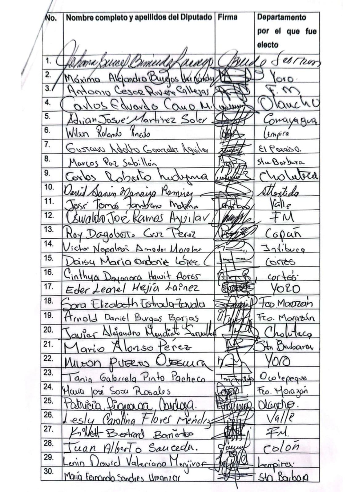 Estos son los diputados y las firmas que respaldaron el nombramientos de los tres integrantes de la Junta Directiva Provisional.