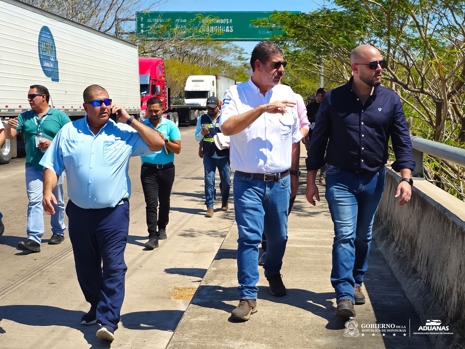 Tegucigalpa, 18 de febrero de 2026- El director de Aduanas Honduras, Marco Abadie, junto al ministro de la Secretaría de Infraestructura y Transporte (SIT), Aníbal Ehrler, y el director del Instituto Nacional de Migración, Carlos Cordero, recorrieron los predios de la Aduana El Amatillo, frontera con la República de El Salvador, con el objetivo de evaluar las condiciones actuales de esta aduana terrestre.
