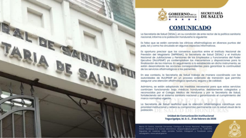 La Secretaría de Salud (SESAL), en su rol de ente rector de la política sanitaria nacional, aclaró este jueves que las clínicas oftalmológicas en Honduras no están siendo cerradas, desmintiendo la información que circuló recientemente en medios y redes sociales.